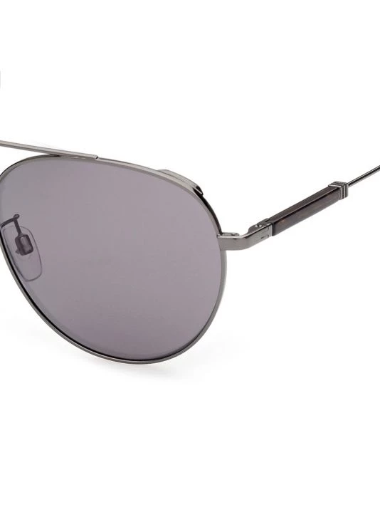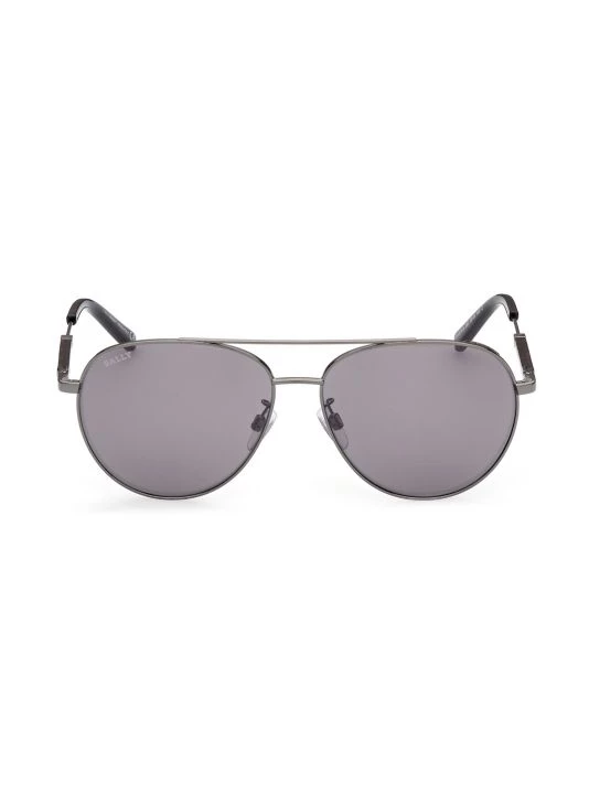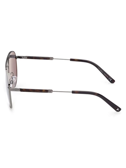 Bally’s Pilot sunglasses feature mirrored lenses with 100% UV protection.