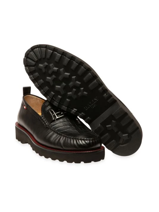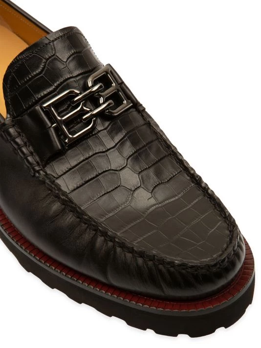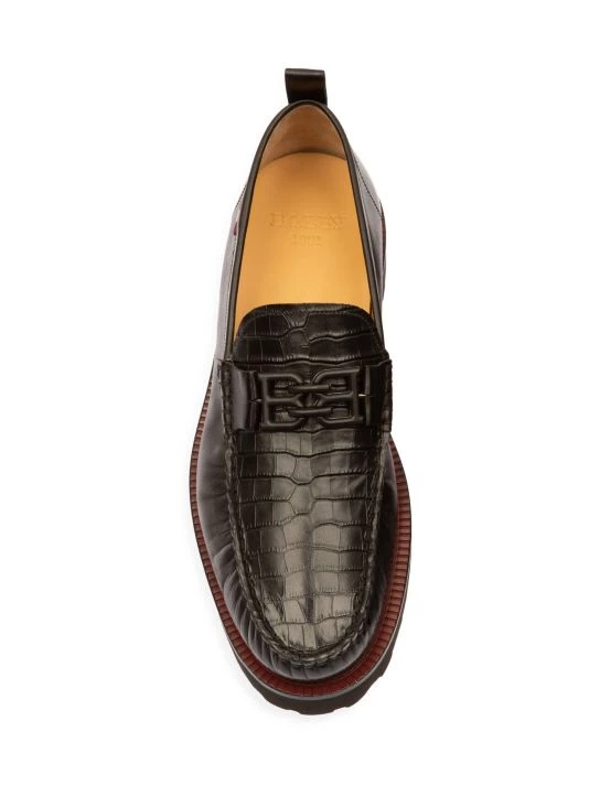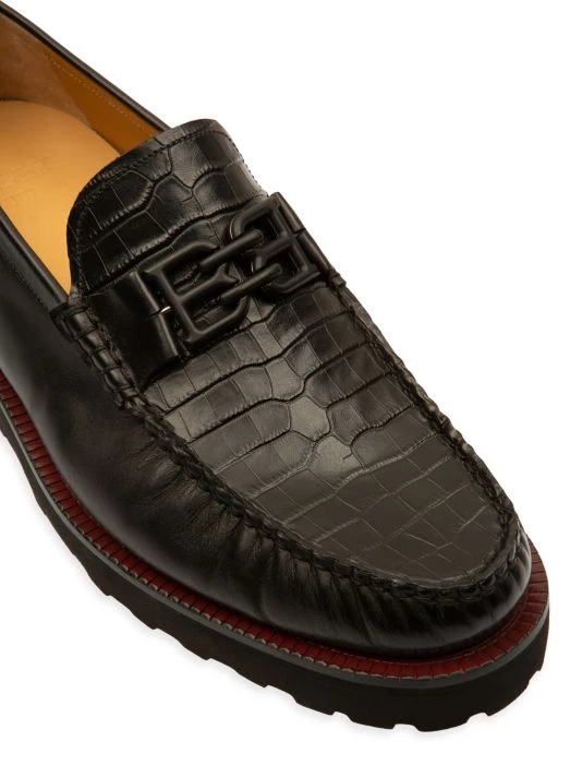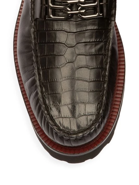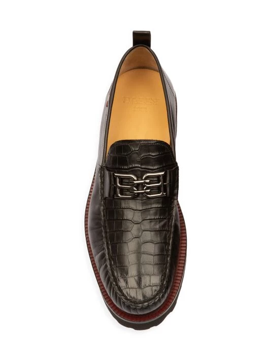 A croc-embossed panel lends a luxurious sensibility to these loafers, topped with metallic logo hardware and designed with a chunky rubber sole.
