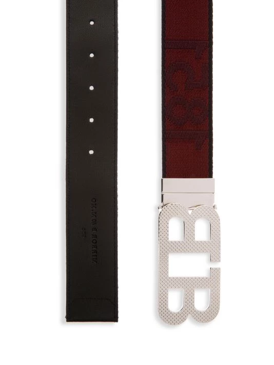 A textured mirrored logo buckle centers this striped, reversible belt.