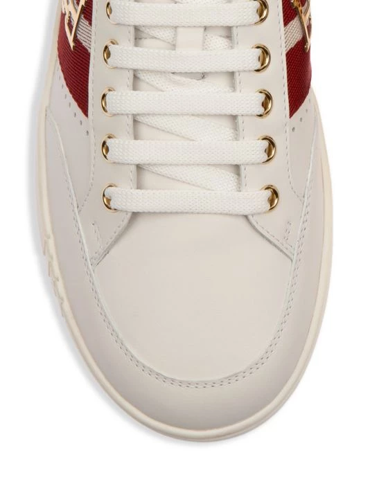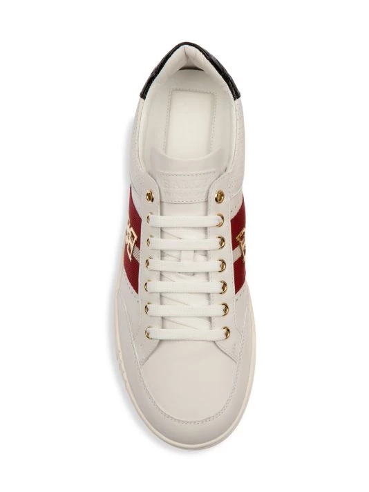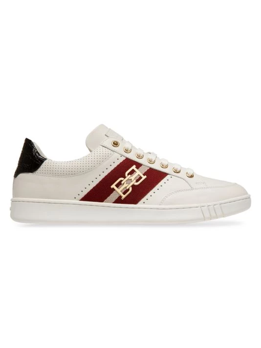 Sleek leather low-tops elevated with signature Bally stripe logo and snake-embossed heel tab.