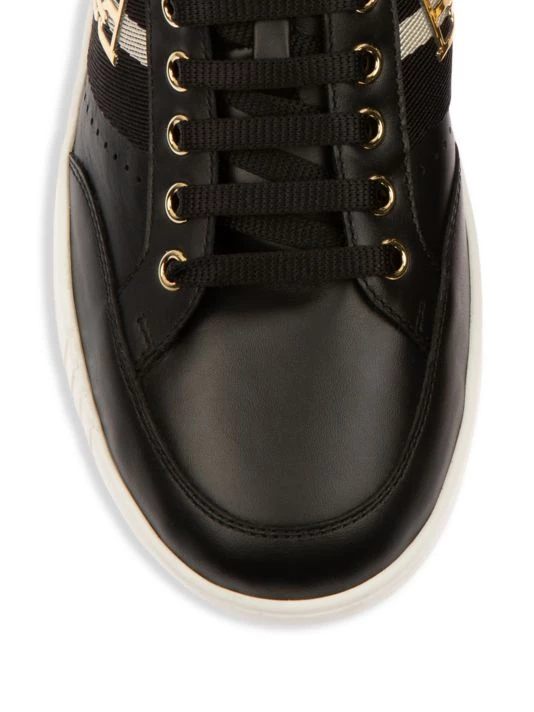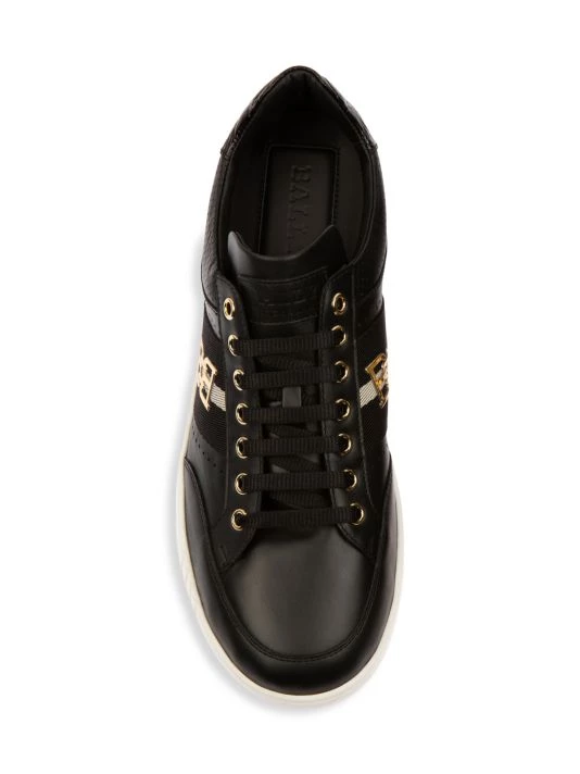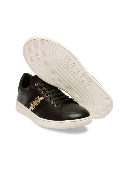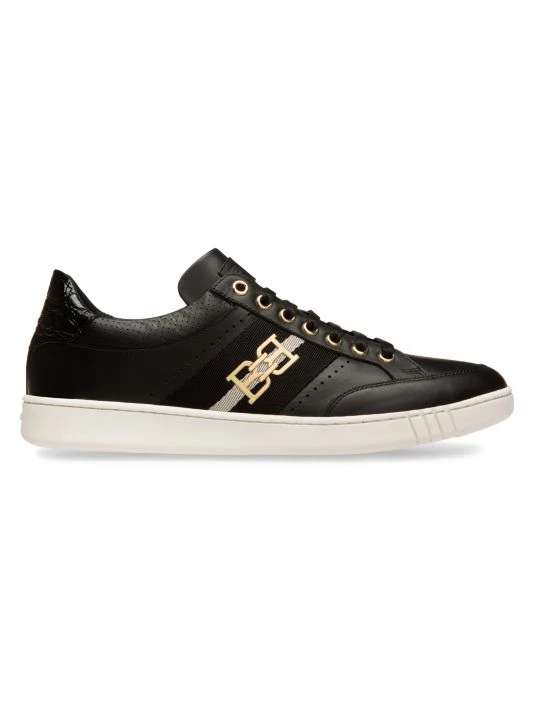 The Winton sneakers in black leather feature Bally Stripe and B-Chain detailing, croc-embossed leather to the heel and a rubber sole.