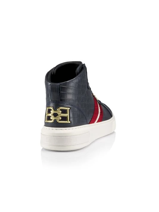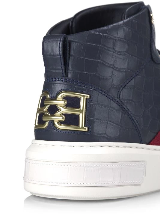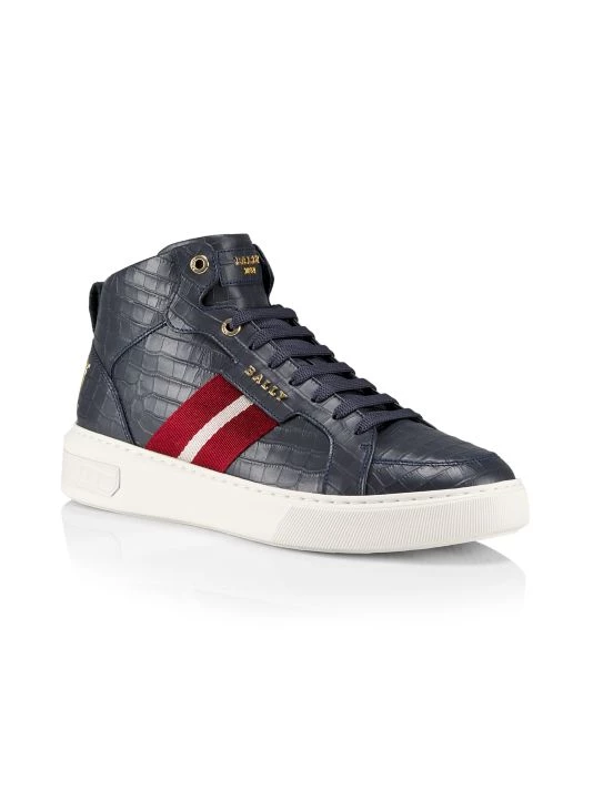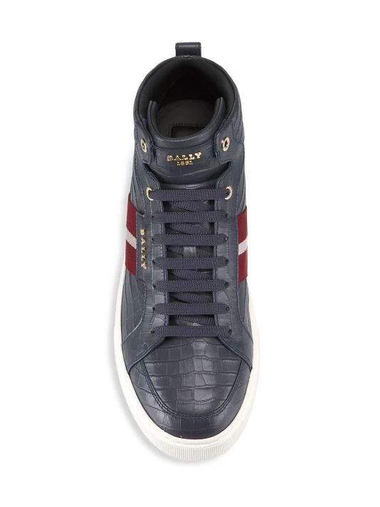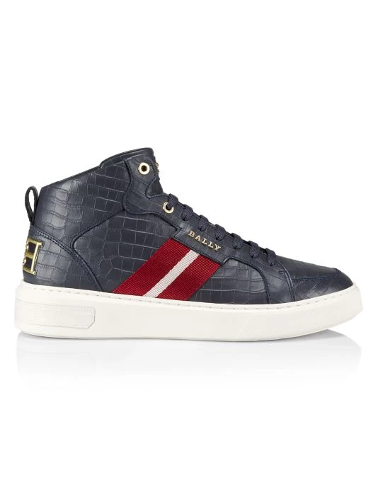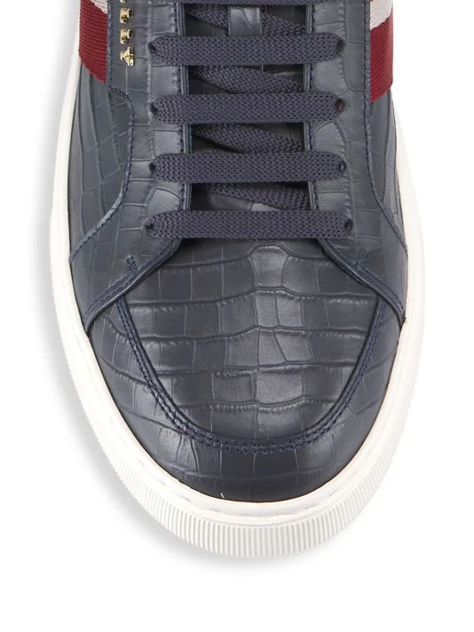 ONLY AT SAKS. These trendy mid-top sneakers are enhanced with croc-embossed leather, signature stripes, and metal logo appliqués.