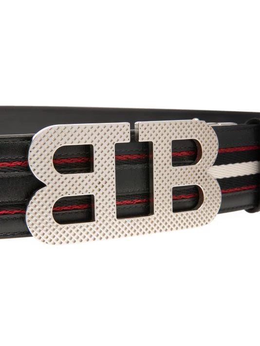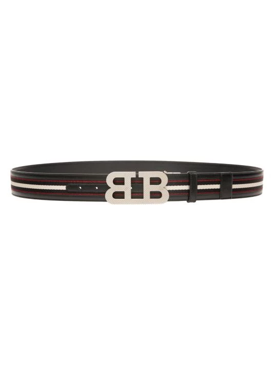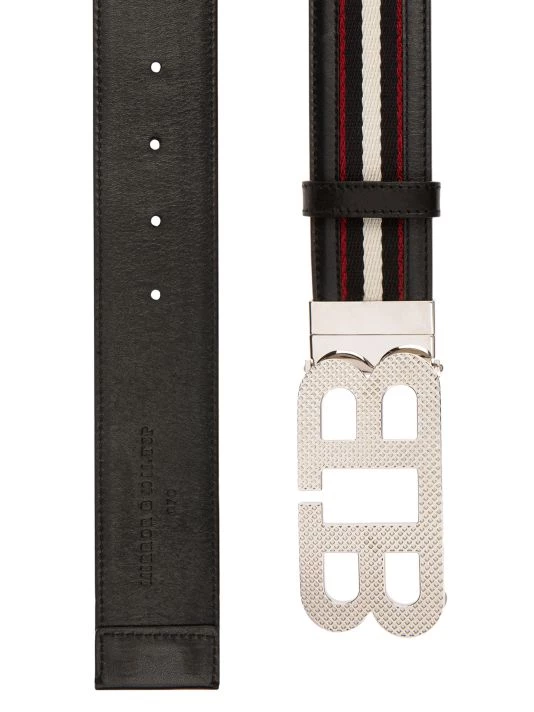 From the Mirror B Collection. A mirrored B buckle secures an Italian-leather belt that reverses to a textile stripe.