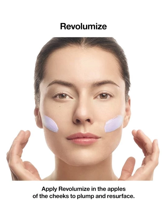 Apply where needed twice a day on face, neck and décolletage. If you’re seeing a loss of volume and are looking to visibly fill and plump, apply Revolumize all over your face.
